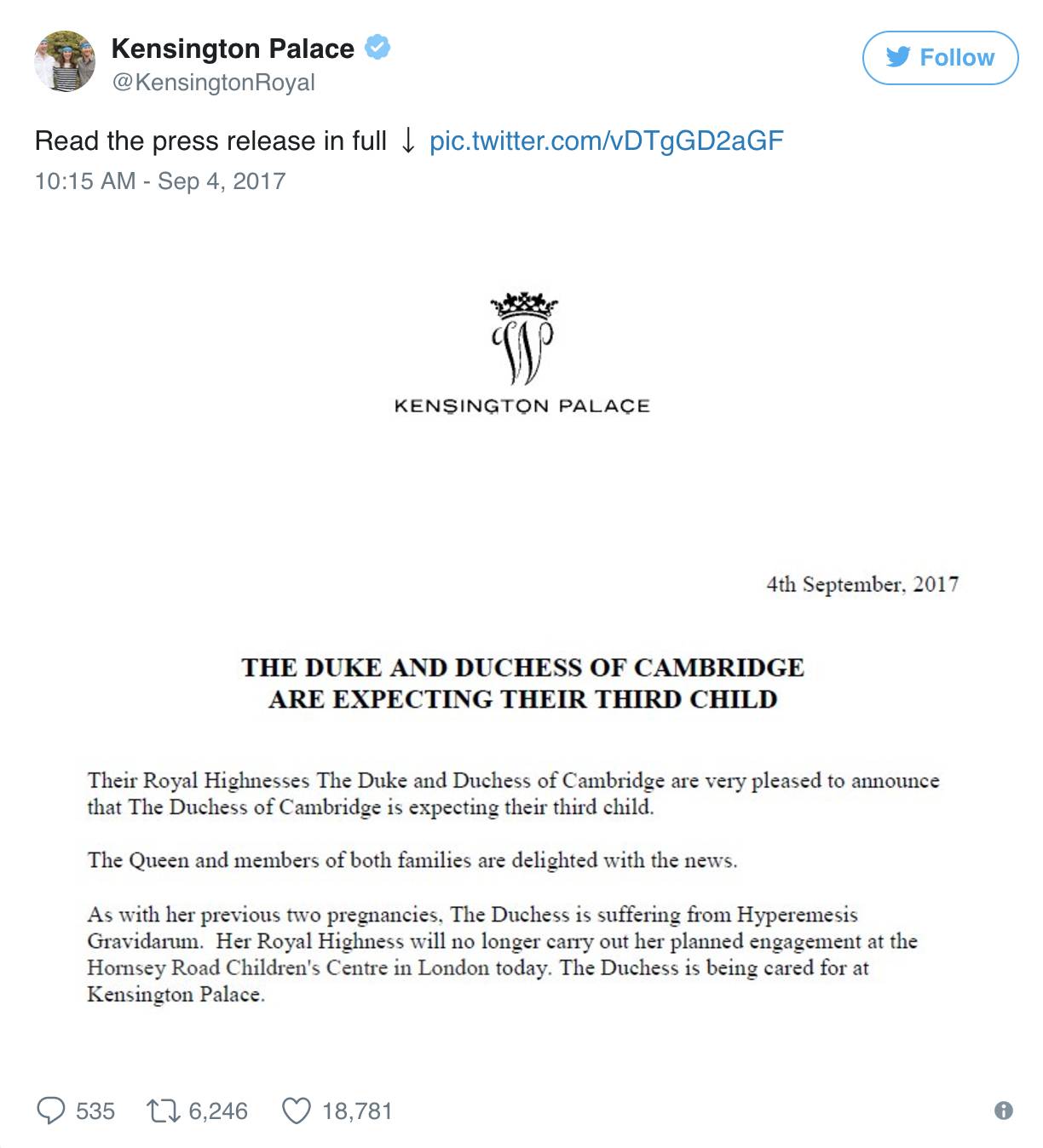 原来,和之前两胎一样,王妃出现了严重的孕吐反应,不仅取消了当天原来计划出席的活动,甚至连之后的各种活动也没办法参加。那不来得给原因啊,所以怀孕的消息其实是“被迫”宣布的。