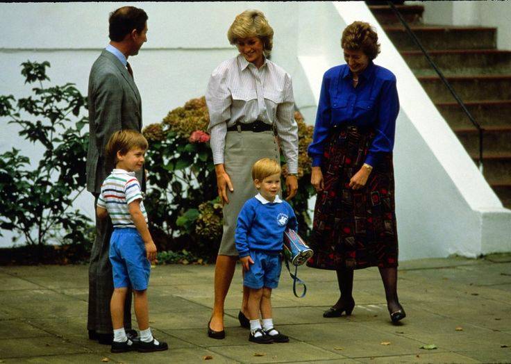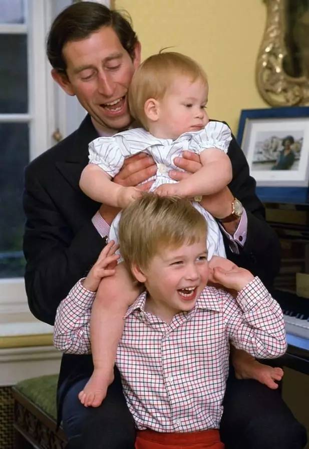 (查尔斯王子与两个幼小的儿子:威廉王子和哈里王子)