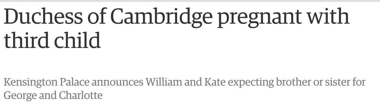 话说,大家应该都给“凯特王妃怀上第三胎”的事刷屏了吧!