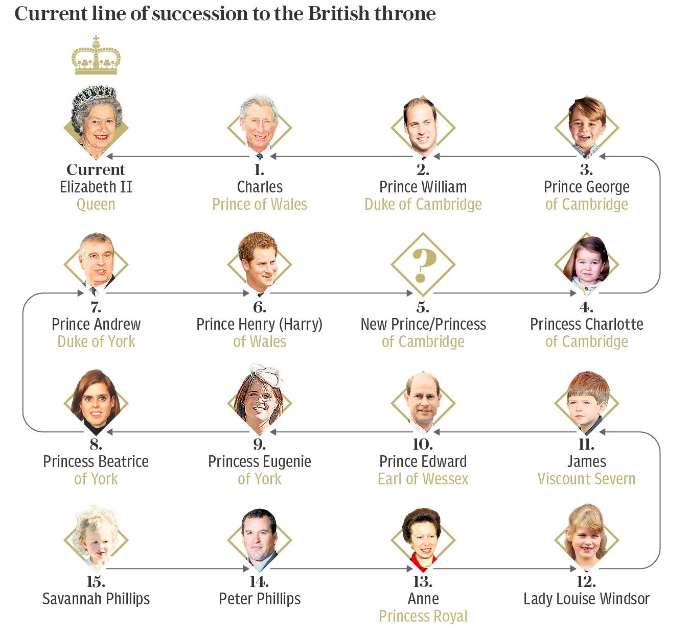 紧接着第三顺位就到了将晋升为家中老大哥的乔治王子,