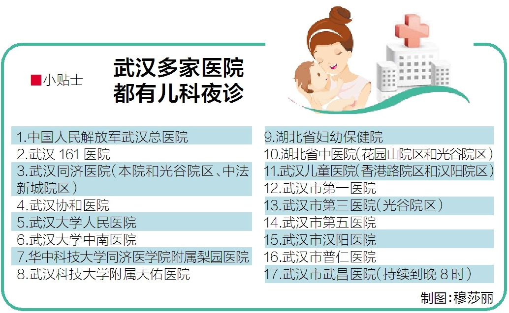 日前,记者来到武汉儿童医院,由于门诊楼环境宽敞,并不显得人很多,但门诊量其实不小。该院门诊办主任王瑞耕介绍,内科、皮肤科、耳鼻喉科的普通门诊都会开到晚上10时,外科的夜间急诊是从下午5时一直到第二天早上8时,内科急诊的夜间门诊则是从晚上10时至次日早上8时,每天晚上的接诊量有300多人次,其中看内科的患儿最多。