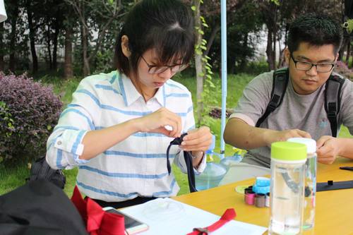6日下午,有新生向她反映军训的衣服和领带有破损的情况,她立即让素质导师助理黄庭涅回寝室拿来针线。乘着新生们军训休息时,韩老师带着几位学生干部帮新生们缝补衣服和领带,针不停地从一边穿进去再从另一边穿出来,手法很娴熟,也十分认真,一会儿就帮助几位新生缝补好了衣物,让他们可以踏踏实实的军训。