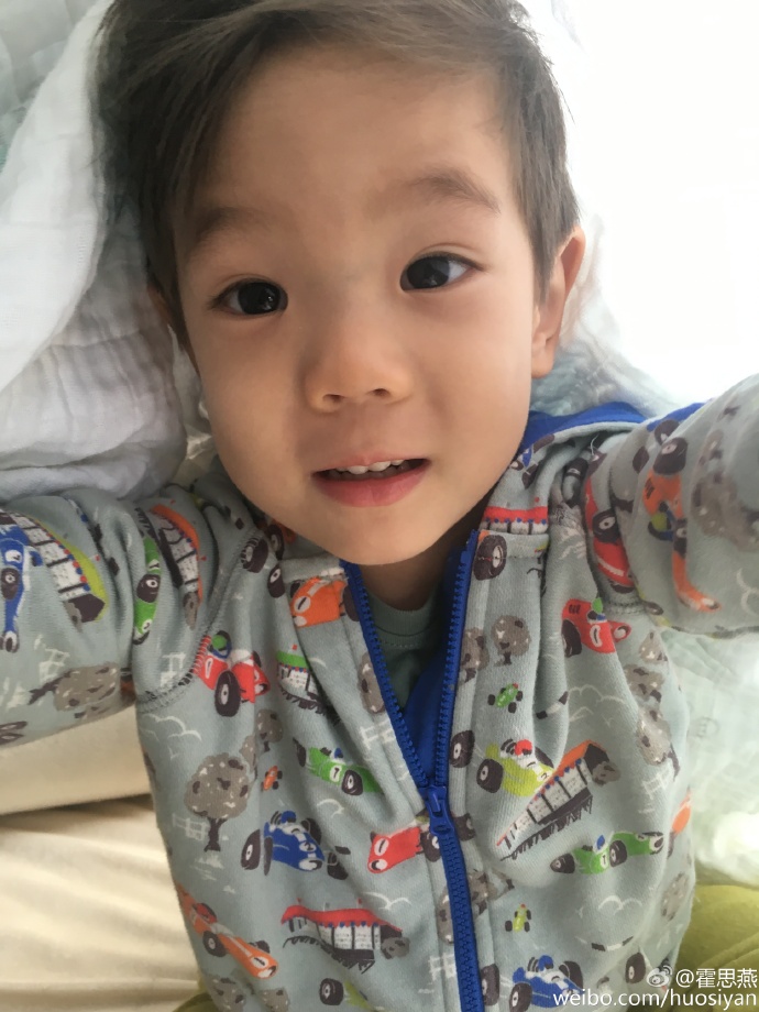 嗯哼的眼睛轮廓有点像妈妈霍思燕,但是跟爸爸杜江一样特别明亮,光看这双眼睛都能知道这孩子长大了不得了。