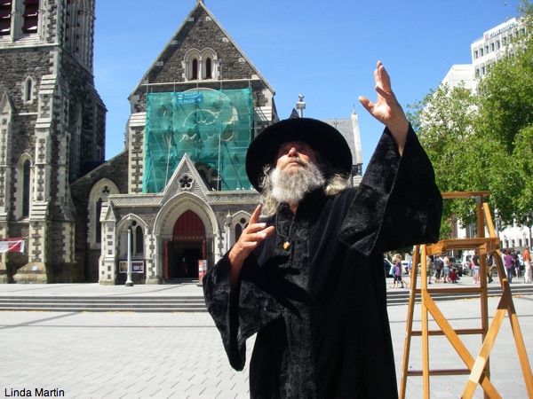 1974年以来,大法师每天都拿着个木头梯子,在午饭时间到新西兰基督城大教堂的广场上演讲,演讲的形式讽刺又幽默,内容基本就是关于他的“魔法理论”和一些政治诉求。