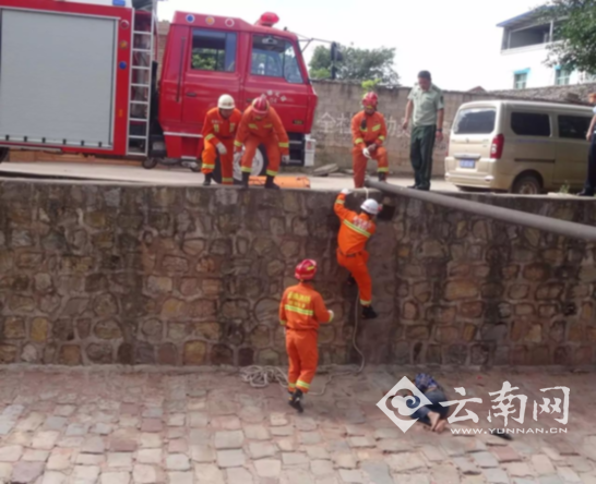 云南元谋一男子醉酒失足坠入4米河堤 消防15分钟迅速救出