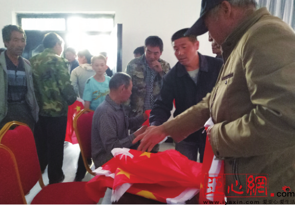 9月4日早晨,榆树园村一组的升国旗仪式结束后,巴特蒙克安排村民们领取了新国旗(如图)。村民马文清说:“老杨掏了2000多元买国旗,这代表了一名老党员的情怀。”