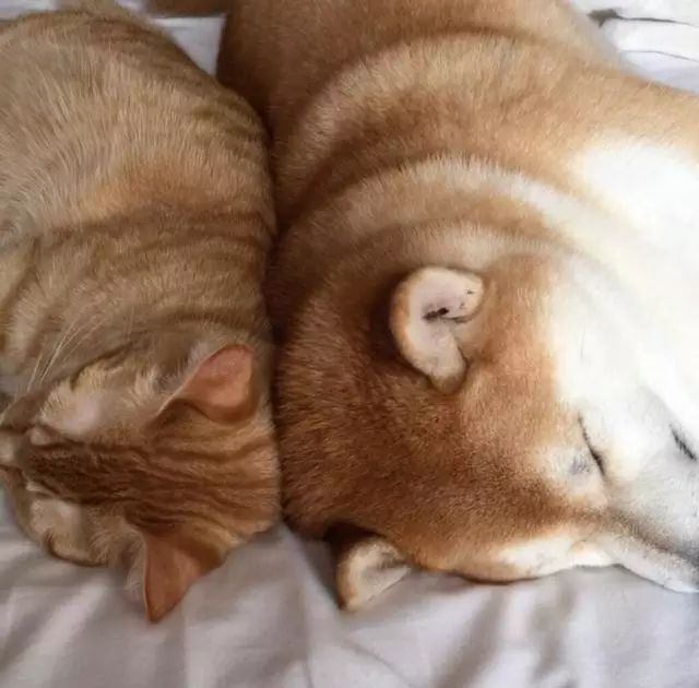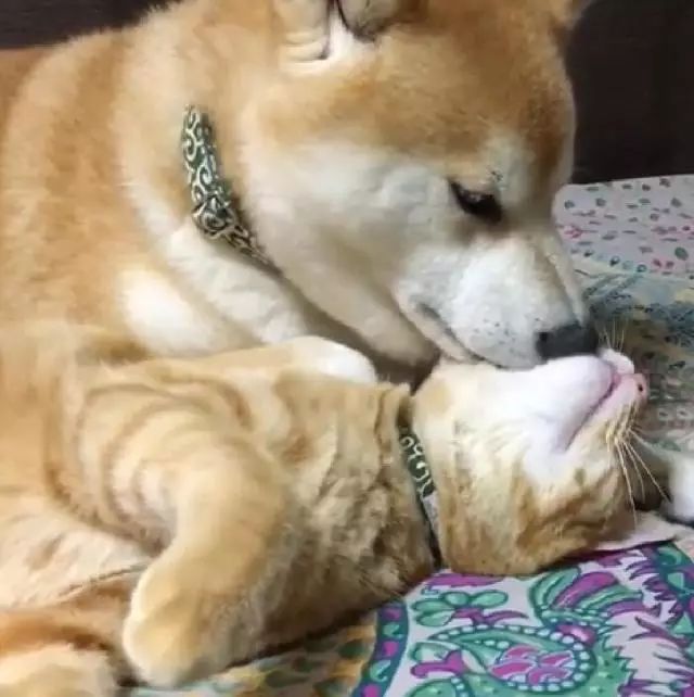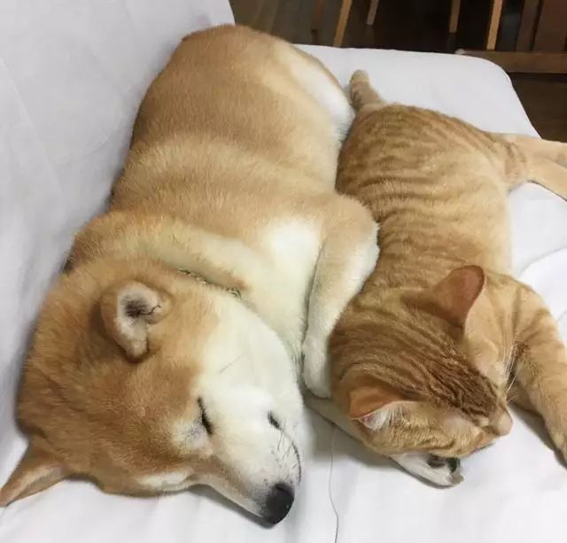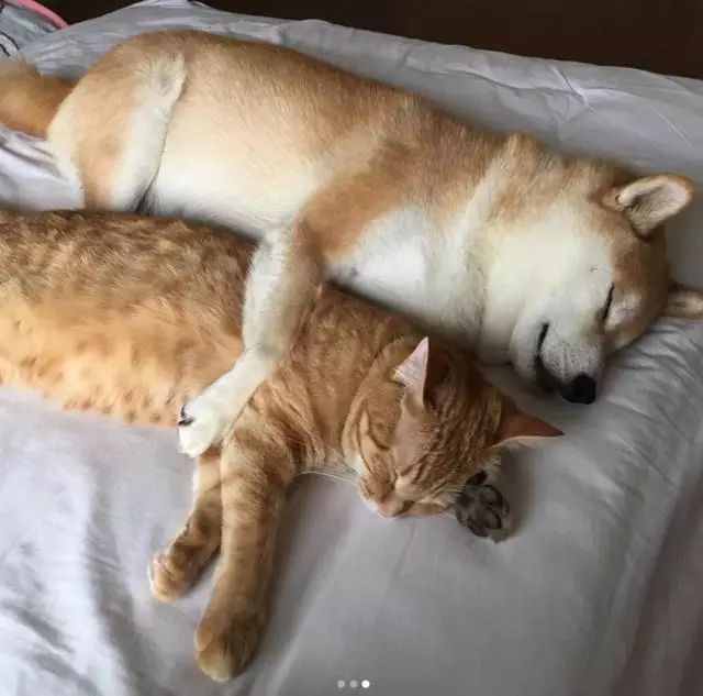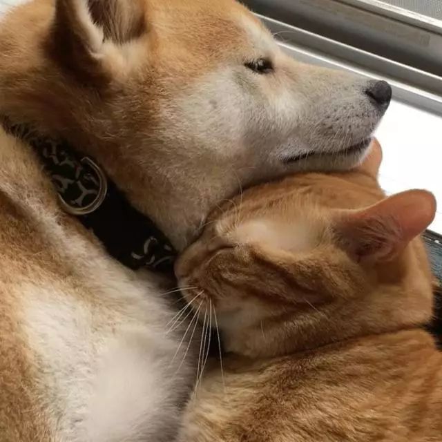 它俩的主人原本也没想到,一只柴柴和一只橘猫,竟然能这么粘这么甜