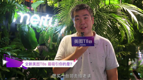 你以为只有少女们种草了吗?也有汉子表达了要买的想法哈哈,TechWeb记者李鹏在美图T8s新品体验会上表示:“体验过这台T8s之后,觉得效果很不错,想买一台回去给老婆”,厉害了我的哥,实在太懂女人心了~