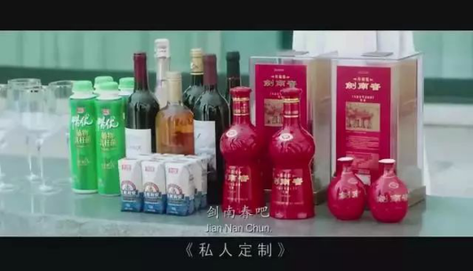 作为华谊兄弟多年的协作同伴,剑南春也在本片中也是频繁露脸。“金剑南”的广告词“这酒,柔”原本应该是冯小刚代言的广告台词,却被男主角郑凯抢词并反复提及,如此显著却又不失俏皮的植入非但没乏味让人出戏,反而令人哄堂大笑,与郑恺搭档郭采洁组成苦涩恋情cp形成强烈反差。而金剑南的出现就是一种表达。