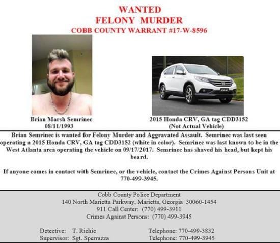 此时一个重要的人物浮出水面,这就是受害人之前交往的美国男友森里内克(Brian Marsh Semrinec)。这名现年24岁的男子的汽车还停在车库内,而受害人曾驾驶的白色2015年Honda-CRV,车牌号码佐治亚州CDD3152却被他开走,目前嫌犯在逃。