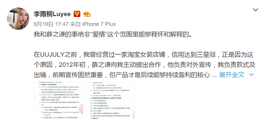 没想到昨天下午李雨桐以“我和薛之谦绝非爱情就能解决和释怀”为开端又又叒叕开始更博了:“店铺是薛之谦注册的,财务是薛之谦的发小和表妹”
