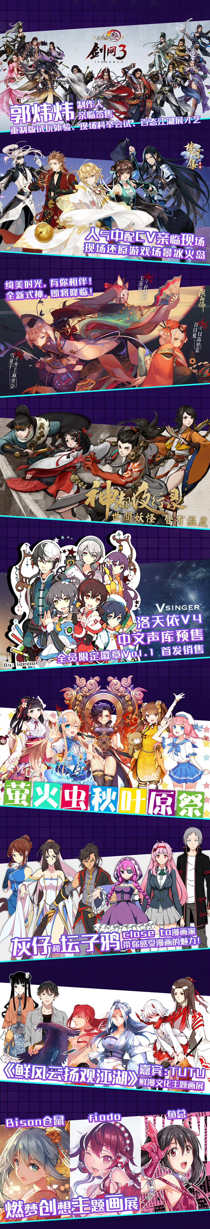热门游戏剑网3制作人郭炜炜亲临签售、人气CV亲临现场还原游戏场景,阴阳师、神都夜行录、洛天依悉数亮相,共同打造一场畅玩欢乐盛宴。