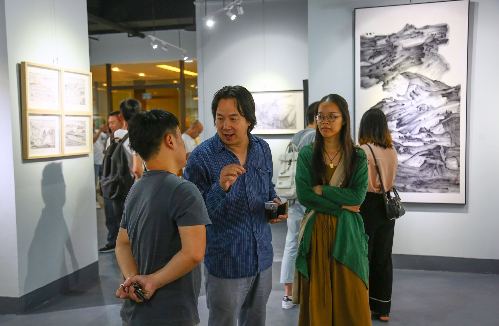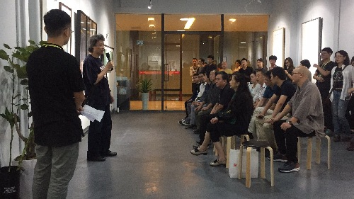 黄山教授在发言中高度肯定了有空间十位年轻艺术家们在国画传承和发扬上的探索,他对记者表示,《投石问路》展出作品无疑都达到了一定的高度,是从艺术家自身角度进行的一次批判,也是对中国画进行再建构的思考,同学们展现出了骨气、精气神。希望有空间以后能成为艺术家们雅集、探索国画发展之路的大空间。查明等与会老师和受邀嘉宾也纷纷表示并赞同有空间是有意思、有想法、有干劲、有作品、有未来的展览空间,希望大家继续努力,作品能够传承中华民族精神与时代脉络。青年策展人柏洪在展览上介绍了《投石问路》的由来:一是十位国画系研究生们在水墨领域呈现出实验性、开拓性的探索,是艺术上的投石问路;二是有空间作为他们共同成立的艺术空间,从独立艺术空间的管理和实践上也有着“摸着石头过河之意”;三是策展人自己首次独立策划,从艺术策划上也有投石问路之意,并希望通过这颗“石头”激起大家的回应,在这个有空间的平台里相互艺术交流和探讨的地方。最后,黄山教授宣布展览开幕。
