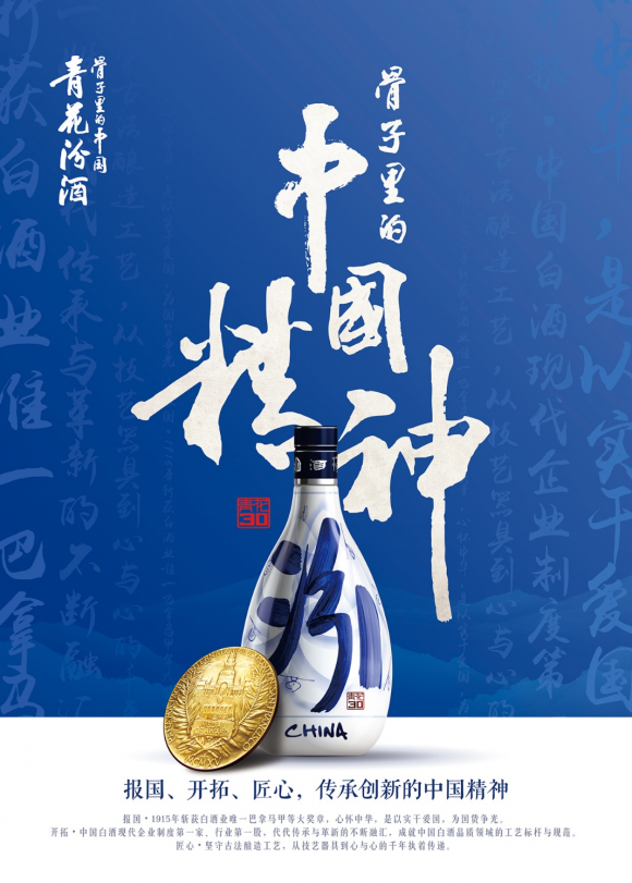 青花汾酒传承发扬了“汾酒·中国酒魂”产业报国、开拓创新、匠心酿造的时代精神,是中国白酒产业与中国社会文化融合发展的杰出成果,展现出了骨子里的中国精神。
