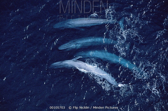 回看20世纪,光是南极附近海域就有34万头蓝鲸遭到捕杀,直到1960年代国际捕鲸委员会宣布禁止捕杀蓝鲸。如今,蓝鲸已然名列IUCN的濒危物种名单。虽然禁止捕鲸,人们并无法确定蓝鲸的数量是正在增加还是没有显著改变。船只碰撞、渔网缠绕、冰川融化导致的环流瓦解,时刻威胁着这些海洋巨人,全世界蓝鲸种群目前估算为10000至25000头。虽然数量可能略有恢复,但对于蓝鲸这种广泛分布的物种来说情况并不乐观。