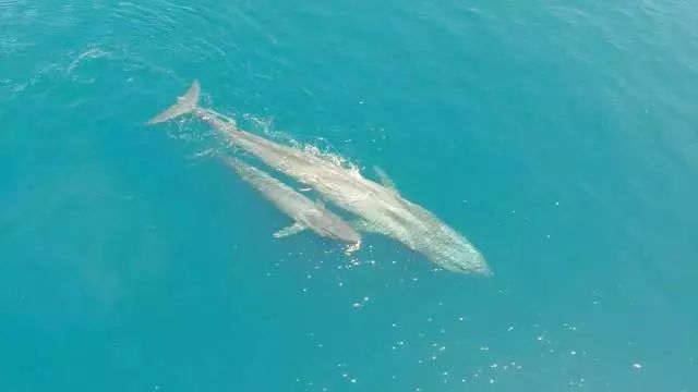 看护幼崽的蓝鲸妈妈。来源:National Geographic / YouTube