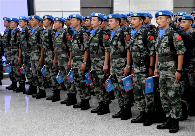 9月21日,维和部队官兵在出征仪式上。新华社记者 朱祥 摄