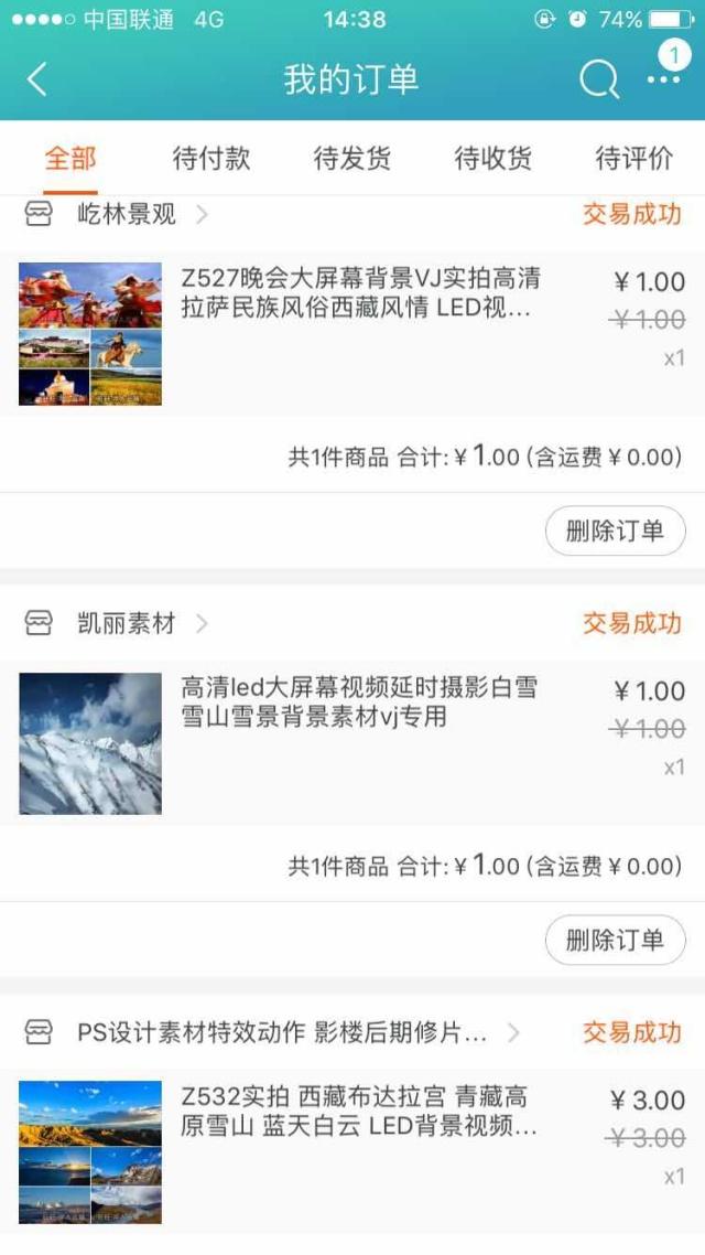 鉴于他是个行动力极强的boy、购物车里的东西基本都下单了,所以大榜直接查看了他的购买订单。作为一名视频后期,当然买了不少视频素材。