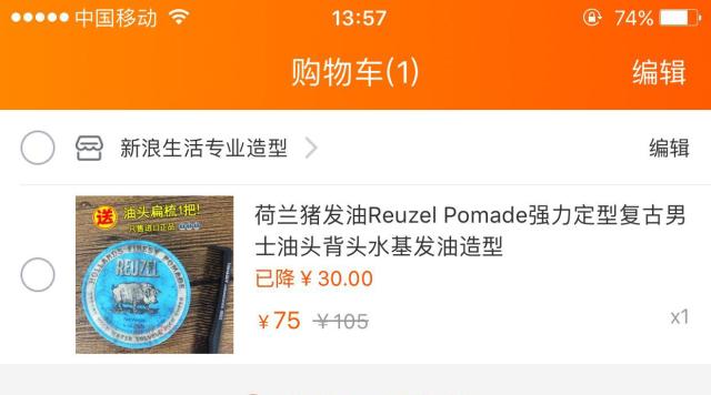 而他的某宝购物车可以说是非常的孤单了,只有一盒发油。