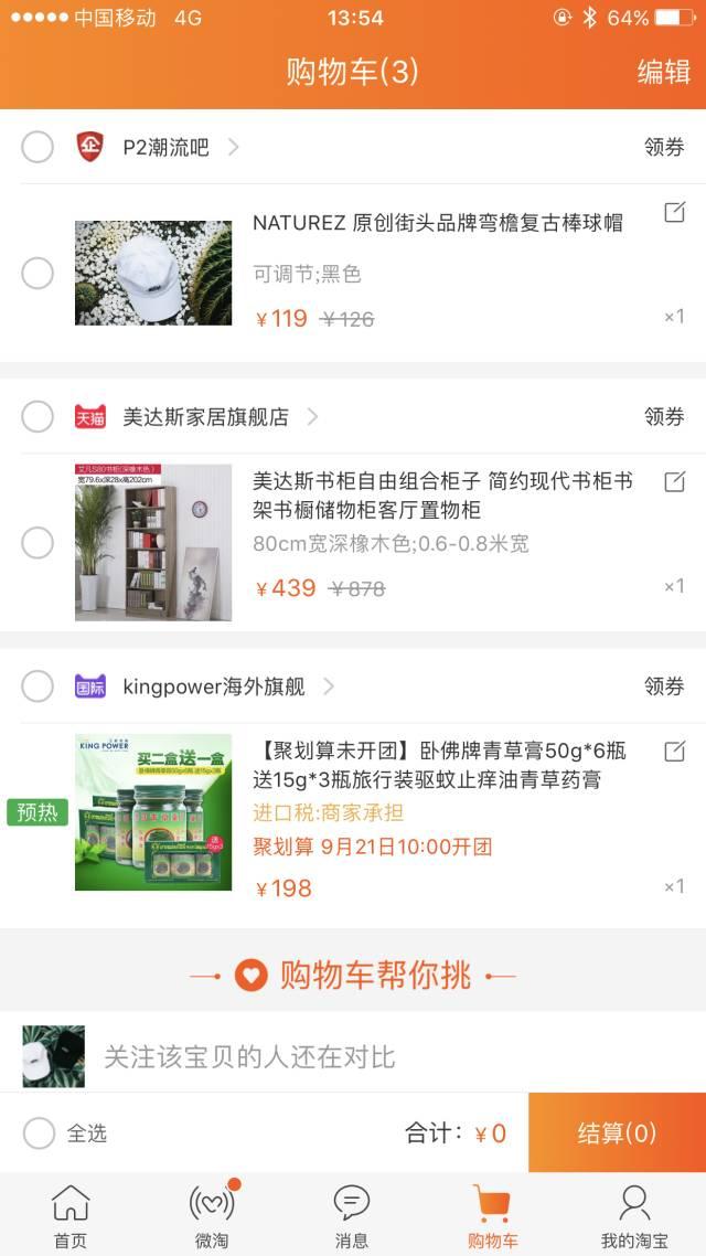 购物车里只有3件物品:帽子、书架、青草药膏(?)。