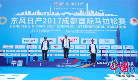 马拉松男子组的前3名被埃塞俄比亚选手包揽。Geza Taddessa Senebeta用时2小时17分23秒率先冲过终点,获得第1名;Balew Yihunie Derseh以2小时17分24秒的成绩屈居第2;Shume Tafa Desta以2小时18分54秒的成绩获得第3名。中共成都市委副书记、市长罗强先生为获奖男运动员颁发奖牌。