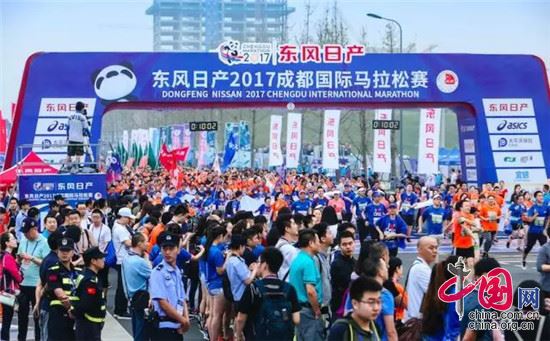 9月23日早上8:00,由中国田径协会和成都市人民政府联合主办,成都市体育局、成都传媒集团、成都高新区管委会、天府新区成都管委会共同承办,腾提度体育负责独家运营推广的东风日产2017成都国际马拉松赛(以下简称“成马”),在四川成都鸣枪开跑。来自全球35个国家和地区的2万跑友,在赛道上感受天府之国的风情和魅力。