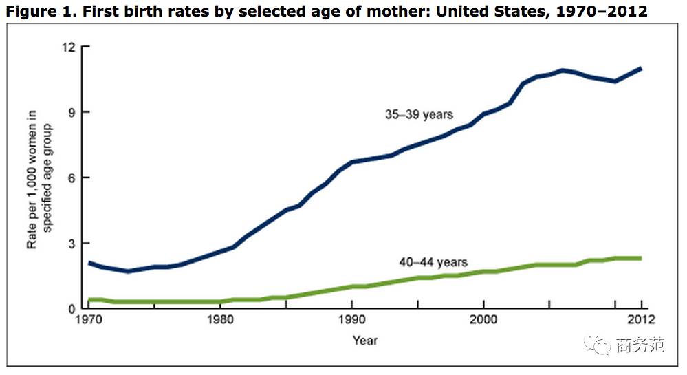 通常,老美转换身份成为美爸、美妈的年龄较大。有学者抽取1000名美国女性做了一次调查,数据表示,1970年-2012年之间,美国女性首次成为母亲的年龄,越来越多的人更倾向于在35岁之后。