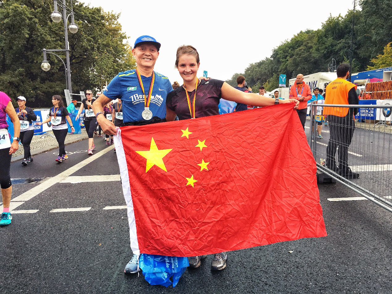 5小时28分30秒后,罗广德与罗壹翔在柏林的薄雾、细雨与人潮中并肩冲过终点。“父亲在柏林马拉松再次创造了PB(个人最好成绩),从544到528。”见证父亲在暮年再次创造奇迹的罗壹翔,激动得眼眶湿润。湿滑路面、阴冷天气都不免让人担忧,而罗广德再一次轻捷地踏过了一切困难。