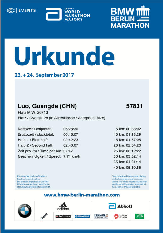 原标题:罗广德:78岁,在马拉松赛道上重启人生 2017年9月24日,柏林当地时间早上10点。阴