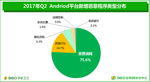 图一:2017年Q2 Android平台新增恶意程序类型分布