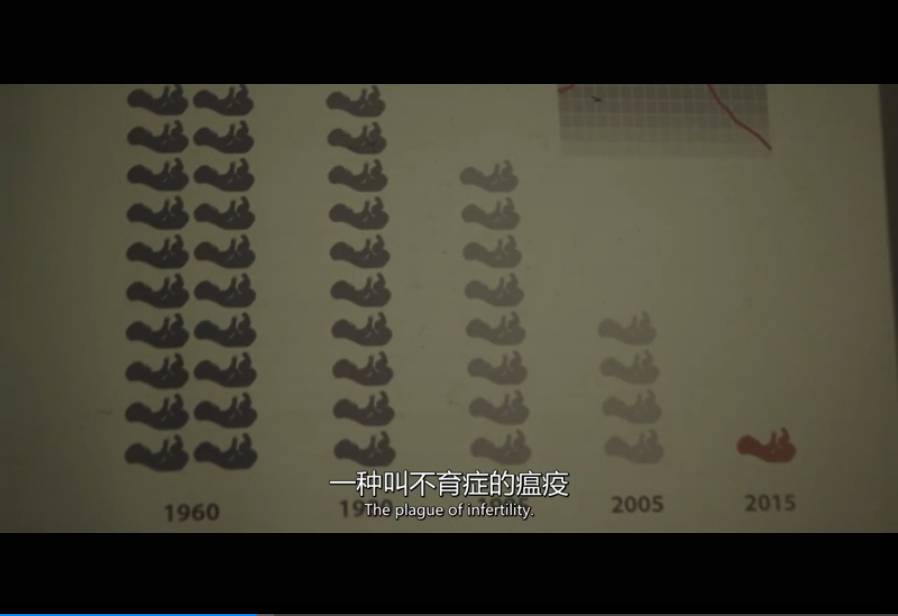 影片的第一集,女主角offred刚刚来到红色中心时,嬷嬷正在台上讲述由于人类胡乱排放化学物质、辐射物质和毒药,上帝创造出了一种特殊的瘟疫——不育症。仍有生育能力的女人就成为了使女,为政府官员的不育妻子生育孩子。