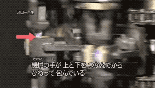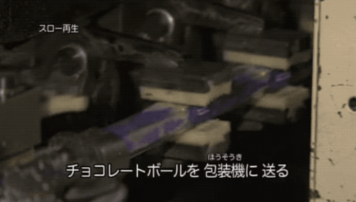 单颗巧克力球都依次落进出塑料薄膜的包装机里,每一颗巧克力球都会被裹了棉布的机械臂夹住,之后有滚切刀把每颗巧克力球的包装糖纸剪开。