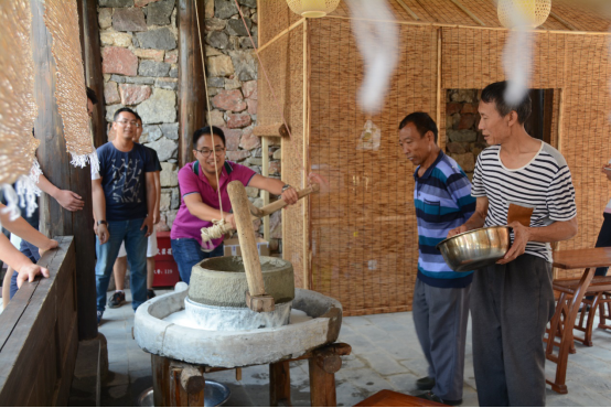 游客亲自动手制作豆腐