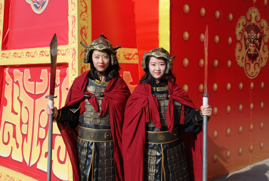 不多时,“美女守城官”入城后“当窗理云鬓,对镜贴花黄”,换上汉服女装,又显婀娜多姿,风采怡人,吸引了众多的游人驻足合影。