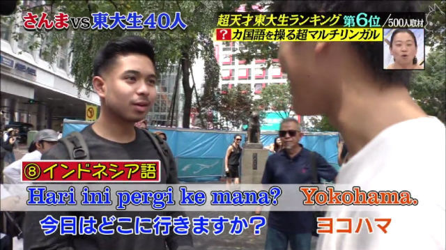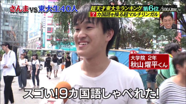 第一位,来自大学二年级的秋山耀平,特技是:“你猜我到底会几门语言”。
