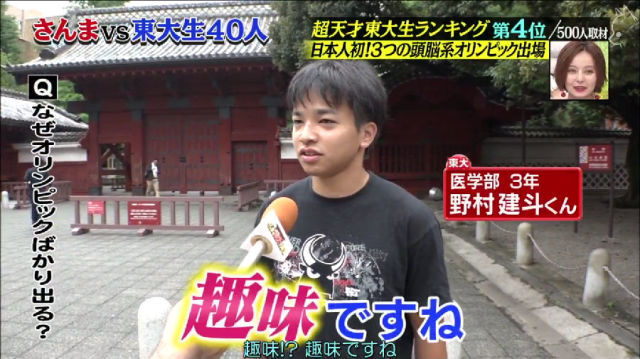 之前日本一档综艺节目,专门跟踪采访了5个东大医学部的学生。他们个个都身怀绝技,才高八斗,在各自领域摸索得风生水起也就罢了,让他们真正出名的是他们的非专业特长,嗯,就是我们所谓的业余爱好。。。