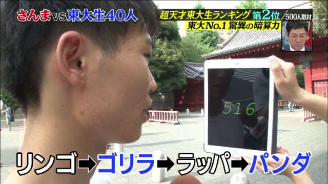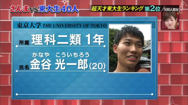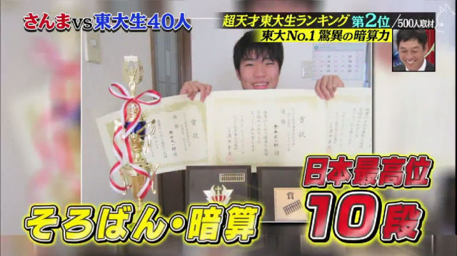 第四位,理科一年级生,金谷光一郎。特技“人形自走计算机”。完全不惧在屏幕面前说出“论心算和珠算,东大各位都是辣鸡”。