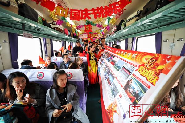 亚心网讯(记者 邵振彤 通讯员 吴奇)“今天是你的生日,我的中国……”10月1日10时32分,嘹亮的歌声响彻车厢,曼妙的舞姿舞动欢乐,在旅客摇动红旗的祝福和掌声中,一辆载着千余名乘客的“民族团结一家亲号”列车从乌鲁木齐驶向和田。人们在车厢里写祝福、唱国歌、写卡片,用不同的方式表达“感恩伟大祖国,共建美丽新疆”的美好憧憬和愿望。