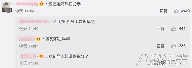 【祝愿早日分手】、【撑死不过半年】、【立刻马上赶紧给我分了】▼