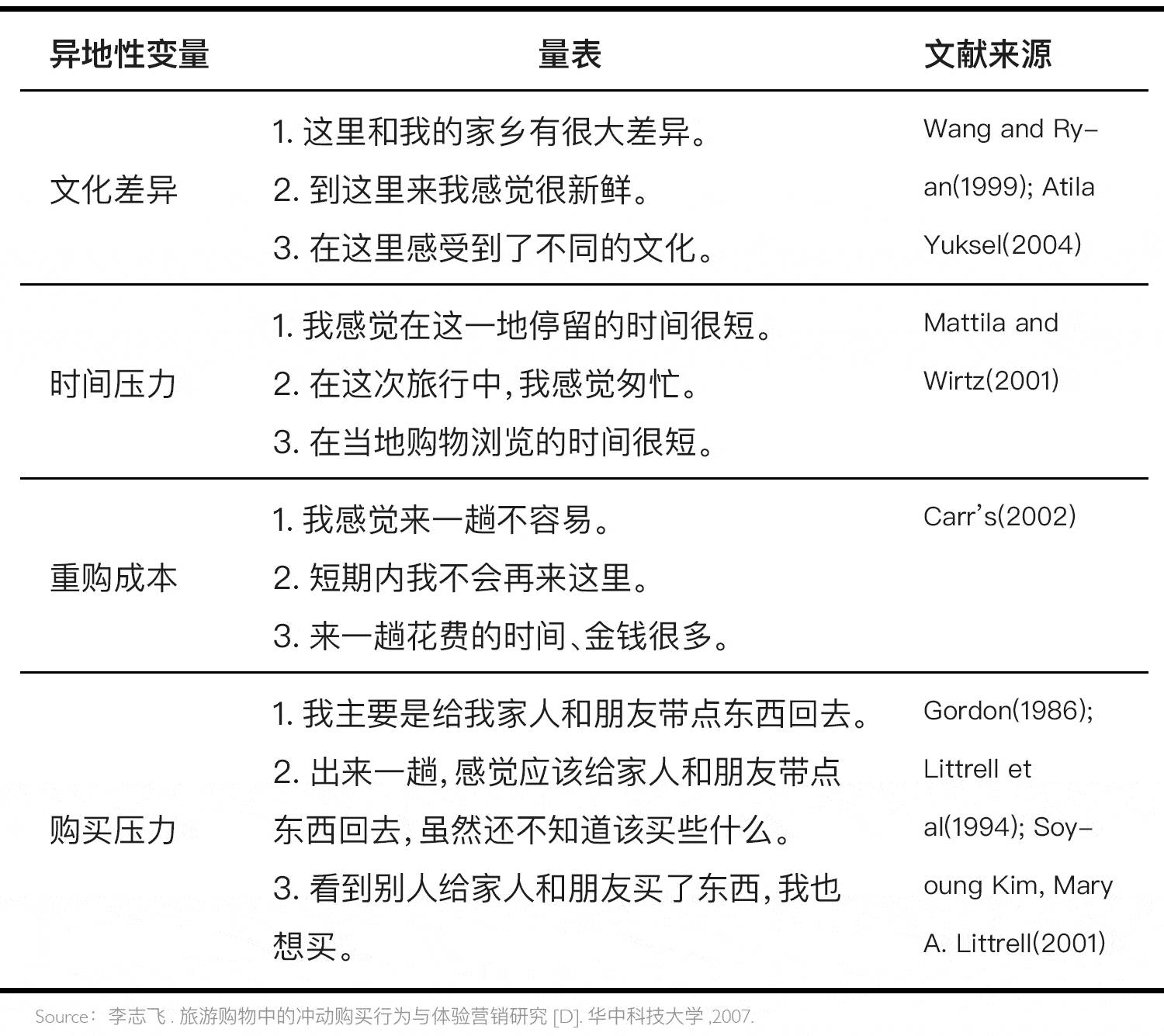 ▍研究者总结的引起旅游冲动购物意愿的主要异地性变量,最终证实,购买压力的影响最大,文化差异的影响次之,重购成本的影响相对最小