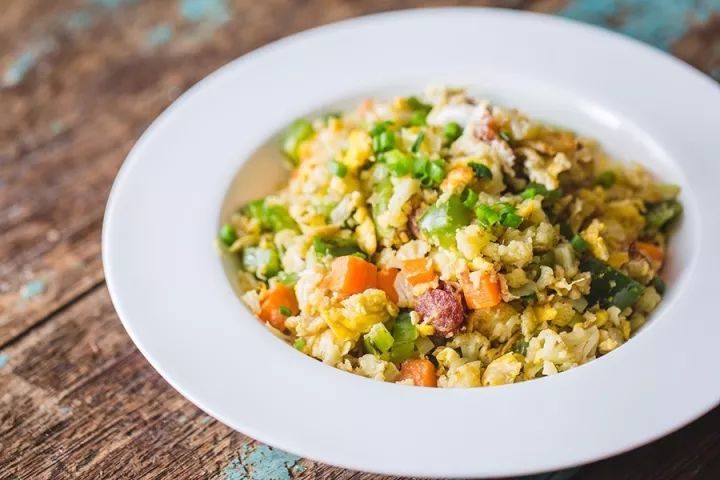 谁说减肥就一定要可怜兮兮的啦。想减少几日来号饮豪食的的罪恶感不?看,我有新招:伪炒饭!