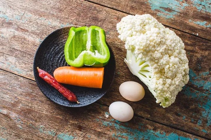 这碗炒饭本人,竟然没有用一粒米哦!花吃姐姐用了花菜来做炒饭,香喷喷一大碗。没有米饭这枚碳水炸弹,吃起来也不负担哟。