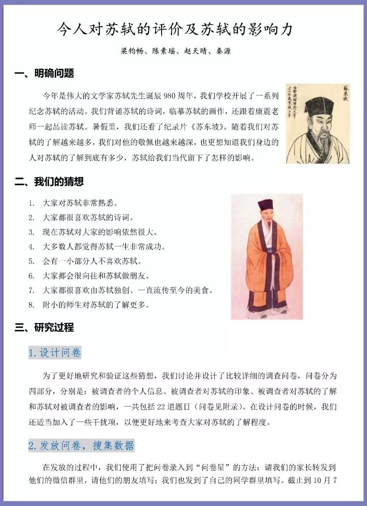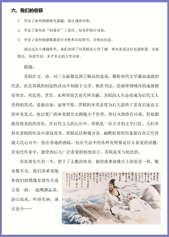 他们进行了苏轼为主题的小课题研究。
