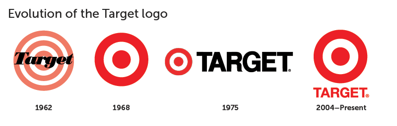 其中,塔吉特百货公司的Logo 在这些年中几乎没有大变化,因为对应其英文名称Target ,Logo 都设计成了一个靶子的形状,非常简单易记。