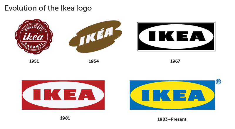 宜家虽然在Logo 上有不小的形象和颜色的迭代,但从1983 年至今使用的主打色为蓝色的Logo 深入人心,再加上公司在这些年对宜家产品中的“宜家蓝”系列的宣传,让不少人记住了这家北欧家具零售商的品牌形象。