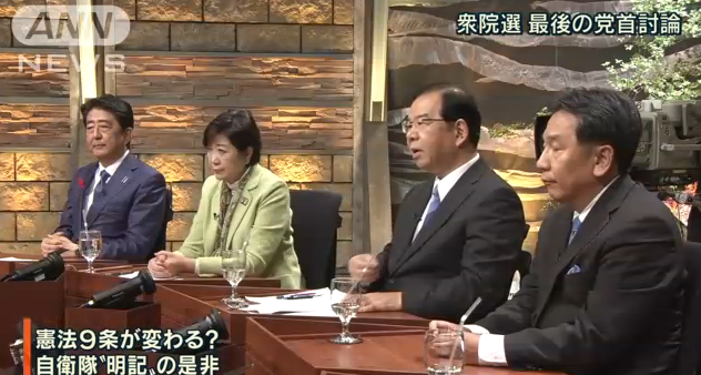 日本朝野8党首在朝日电视台进行最后的党首讨论