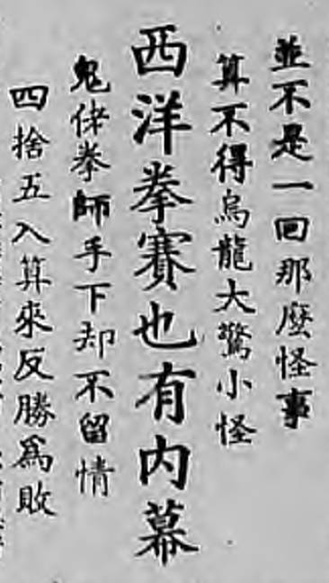 「拳击」里的「乌龙」指的是什么呢?就是假打。报道里的主人公古月氏就是提前给「鬼佬」钱,讲好说要自己打赢。但「鬼佬」先不小心把他打得「鼻血涌出」,后左躲右闪不出拳,可还是多赢了四分。最后靠着四舍五入,才把「鬼佬」领先的分数归了零。