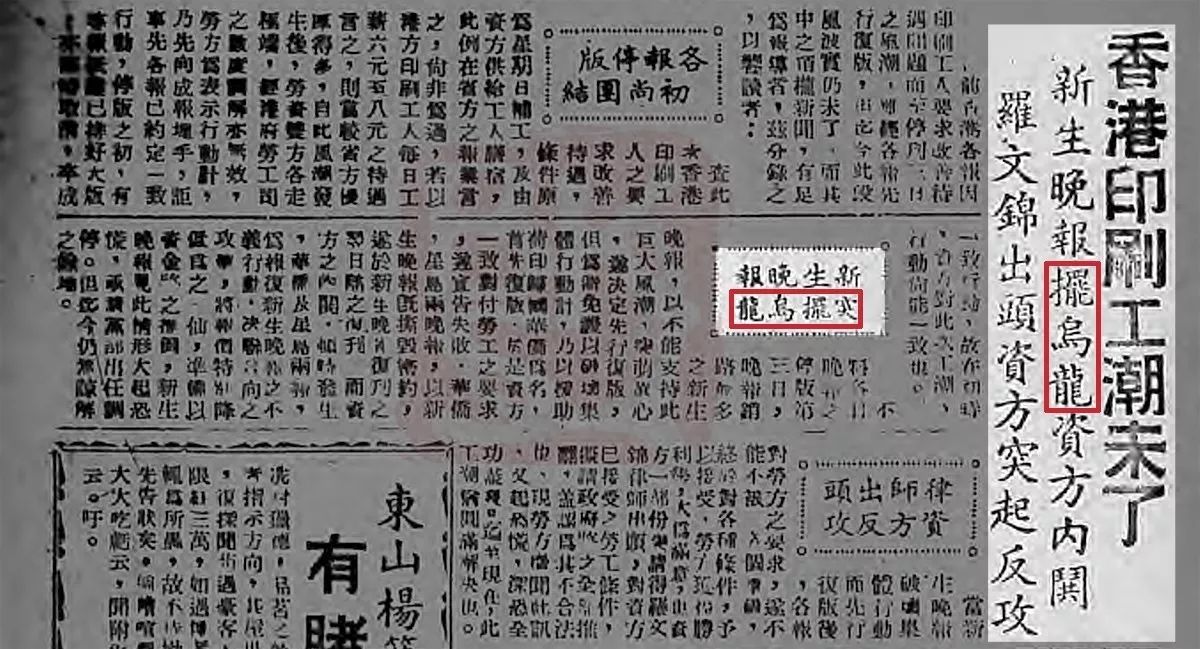 比如在1946 年的《针报》中就报道了这么一则新闻:香港的印刷工人欲提高待遇而罢工,资方初时组成同盟,但新生晚报却答应工人要求,先行复版……这种行径被形容为「突摆乌龙」。