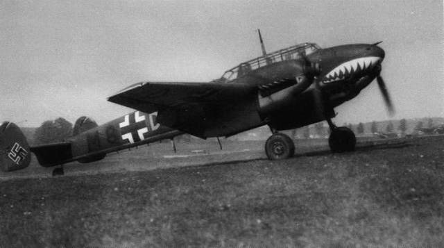 当然鲨鱼头图案并非原创,来源是飞虎队员在飞行杂志时看到的鲨鱼牙齿图案。甚至在以前就有将鲨鱼牙齿涂在机头上的情况出现了。比如德国空军的 Bf 110C-3,震慑力十足。随着飞虎队扬名中外,鲨鱼头也成了飞虎队的象征。