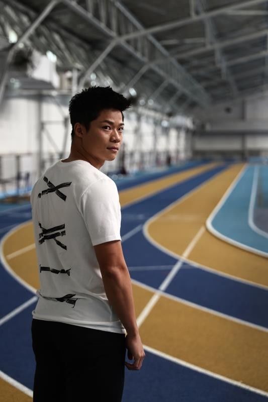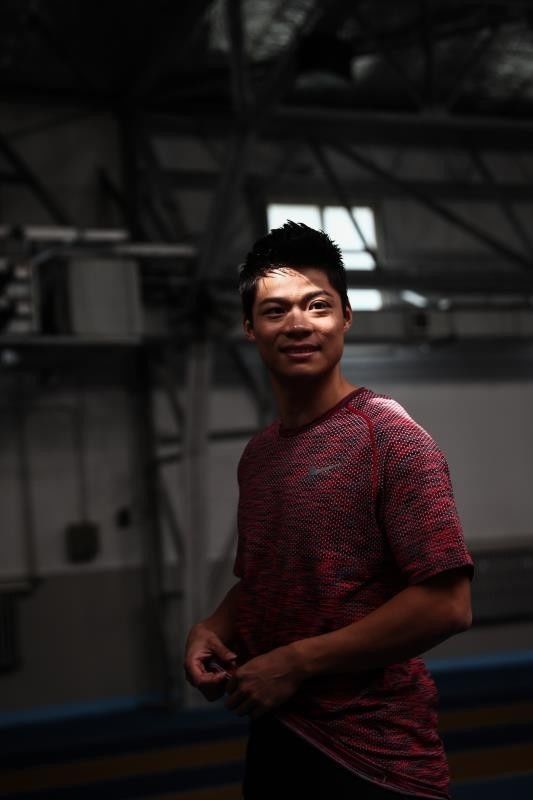 说这话时,他正在为代言的品牌拍摄广告。9月27日,入秋的北京寒意初现。天泛着阴灰色,中午一过,国家体育总局的田径训练场下起骤雨。